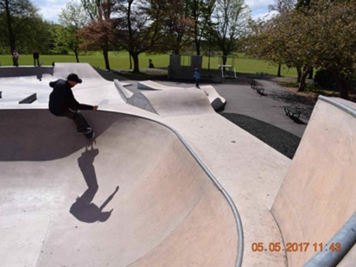 New floated concrete wheeled sports area suitable for roller blades, skateboards, roller skates, scooters and bikes.