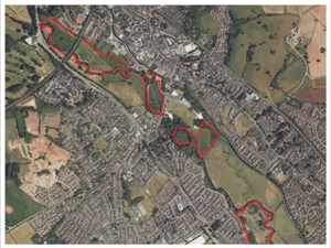 We own two Local Nature Reserves (LNR) in Stone, the larger Goodall Meadows in the north and the appropriately named Southern Meadow - boundaries highlighted in red at either end of the map.